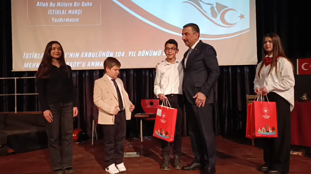 Etkinlik kapsamında düzenlenen İstiklal Marşı’nı Güzel Okuma Yarışması’nda dereceye giren öğrencilere ödülleri Zonguldak Valisi Osman Hacıbektaşoğlu tarafından takdim edildi.