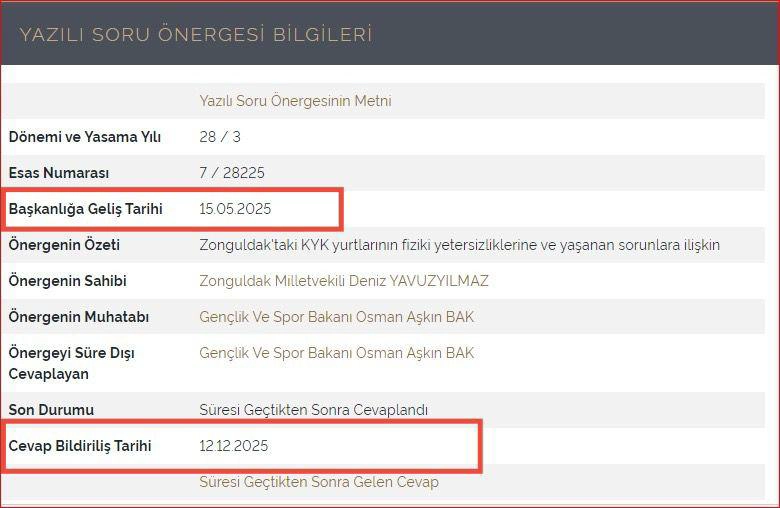“Zonguldak’taki KYK yurtlarında yaşanan barınma, hijyen ve beslenme sorunlarını defalarca Meclis gündemine taşıdık. Soru önergeleri verdik, araştırma önergeleri sunduk, uyardık. Ancak uyarılarımız görmezden gelindi. Bugün gelinen noktada öğrencilerimiz, emanet edildikleri yurtlarda yedikleri yemekten dolayı hastanelere kaldırılıyor. Bu kabul edilemez.”