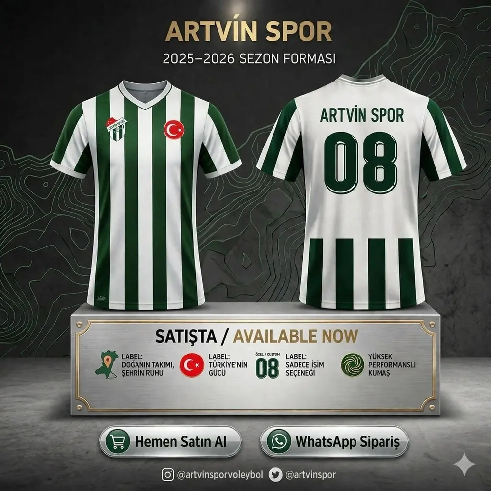 Artvinspor Kulübünün özel tasarımlı yeşil-beyaz formaları bin 500 TL’den satışa sunuldu. Artvinspor Kulübü Başkanı İrfan Yıldırım, 2026-2027 sezonunda kadınlar voleybol 2 ligine katılım sağlayacaklarını belirterek, “Başta kadınlar voleybol ligi olmak üzere kulübümüzün tüm branşlarda göstereceği faaliyetlere maddi destek amacıyla “Bir forma da sen al memleketinin takımına destek ol.” projesini hayata geçirdik.“dedi.