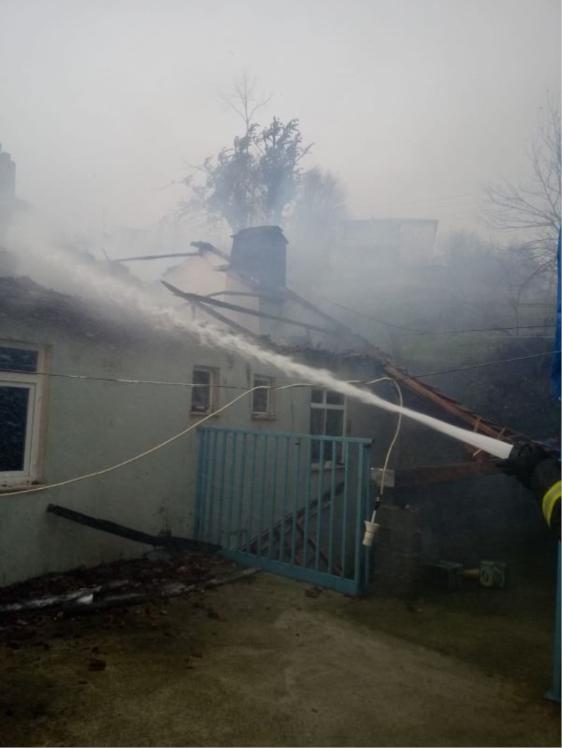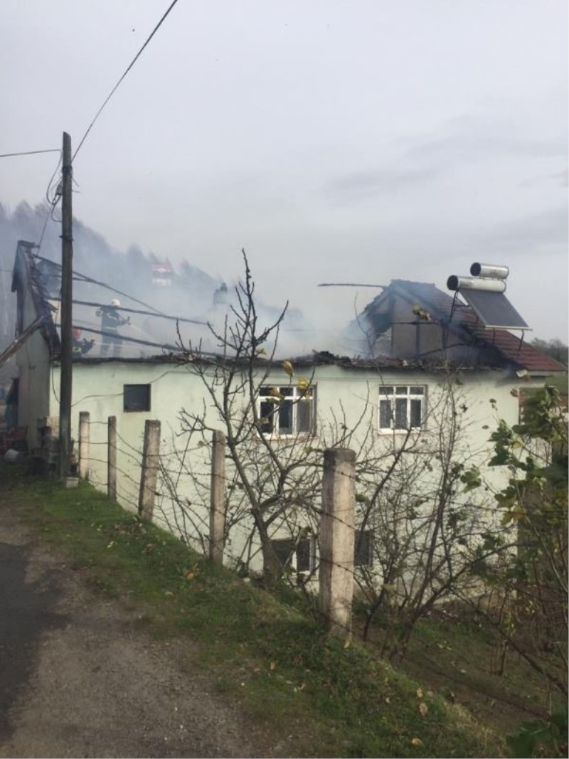 Zonguldak’ın Ereğli ilçesine bağlı Yalnızçam köyünde iki katlı binanın çatı katında yangın çıktı.