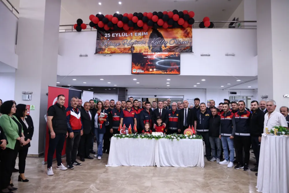 Önceki günlerde şehrimizde kuvvetli sağanak yağışlar nedeniyle ertelemiş olduğumuz ve bugün gerçekleştirdiğimiz programda, Başkanımız Tahsin Erdem İtfaiye Haftasını kutlayarak, zor şartlar altında halkımızın can ve mal güvenliği için gece gündüz demeden görev yapan İtfaiye Teşkilatımızın önemine vurgu yaparak tüm ekibe teşekkür etti. Programın sonunda, birlik ve beraberliğin simgesi olarak itfaiye personeliyle birlikte pasta kesimi gerçekleştirildi.