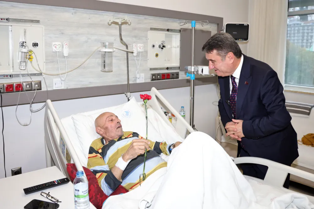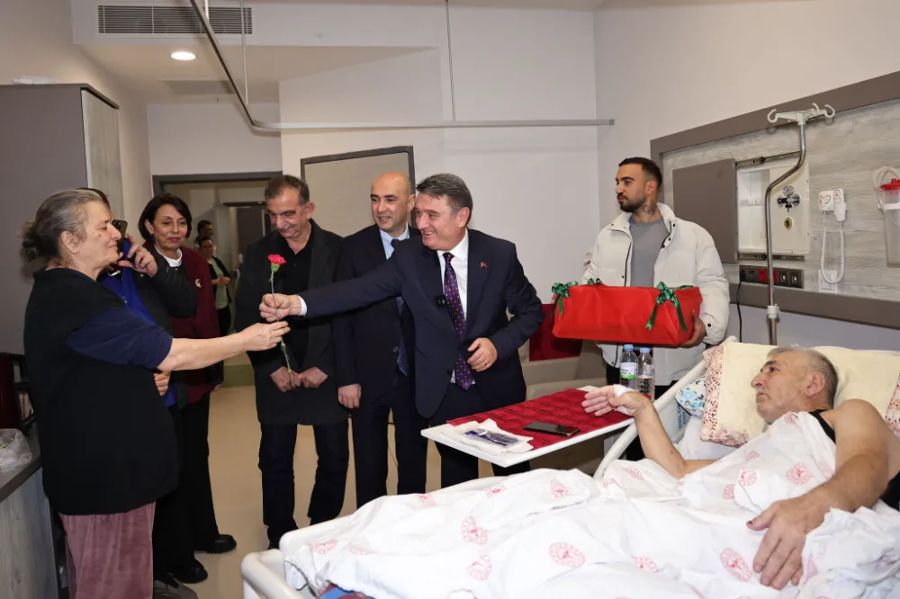 Atatürk Devlet Hastanesi ziyaretinde hasta ve hasta yakınlarıyla da görüşen Belediye Başkanımız Tahsin Erdem, tedavi gören vatandaşlarımıza geçmiş olsun dileklerini ileterek acil şifalar diledi.