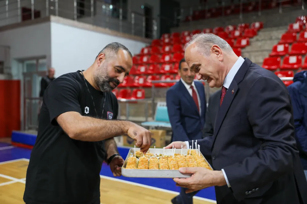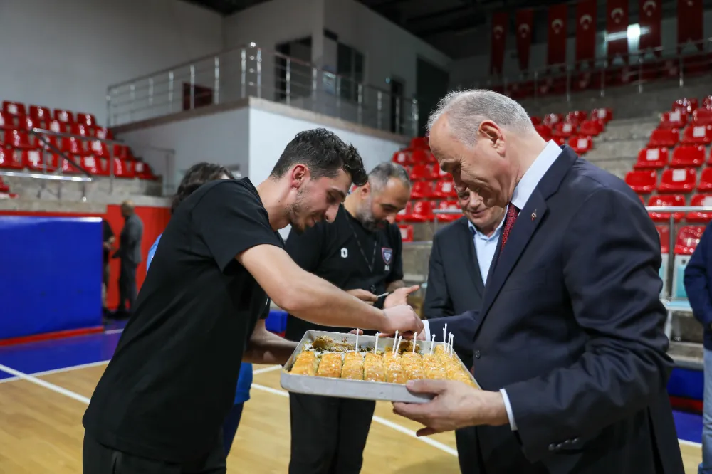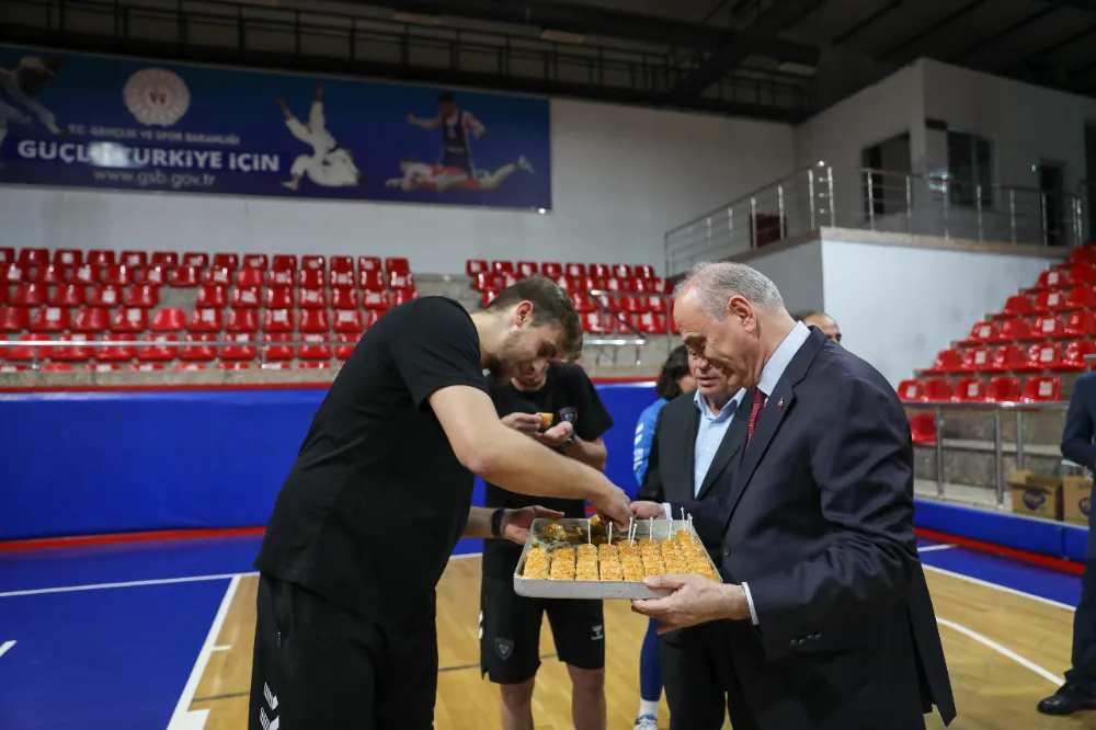 Başkan Özlü, antrenman öncesinde sporcuları Fenerbahçe galibiyetinden dolayı kutladı ve başarılarının devamını dileyerek takıma baklava ikramında bulundu.