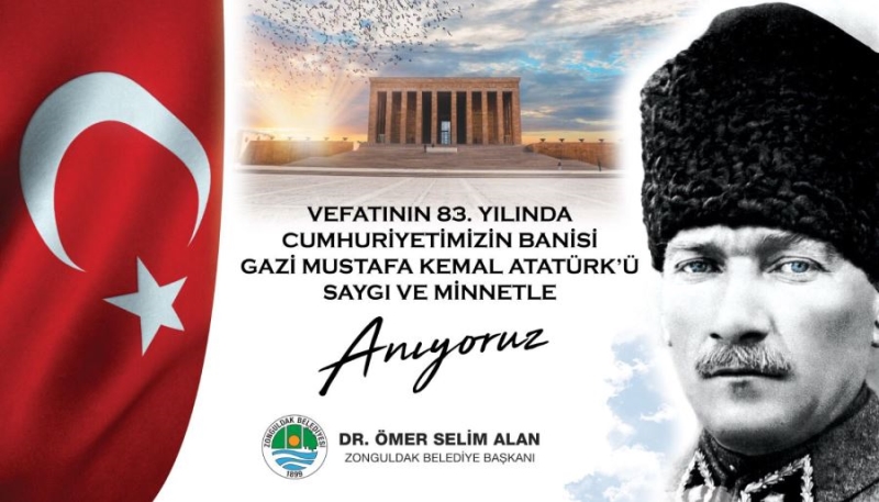 Zonguldak Belediye Başkanı Dr. Ömer Selim Alan Cumhuriyet’imizin kurucusu Gazi Mustafa Kemal Atatürk’ün aramızdan ayrılışının 83’ncü yıldönümü nedeniyle anma mesajı yayımladı. Başkan Alan yayımlamış olduğu mesajında şu görüşlerine yer verdi: