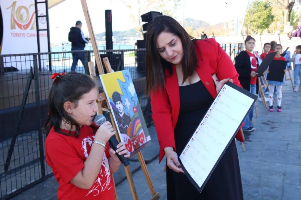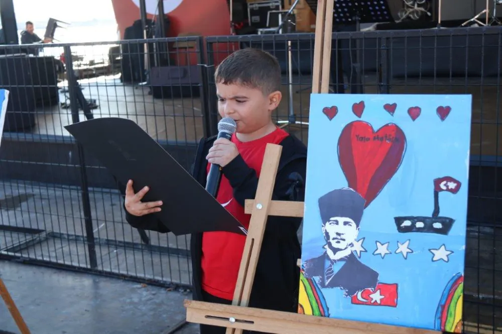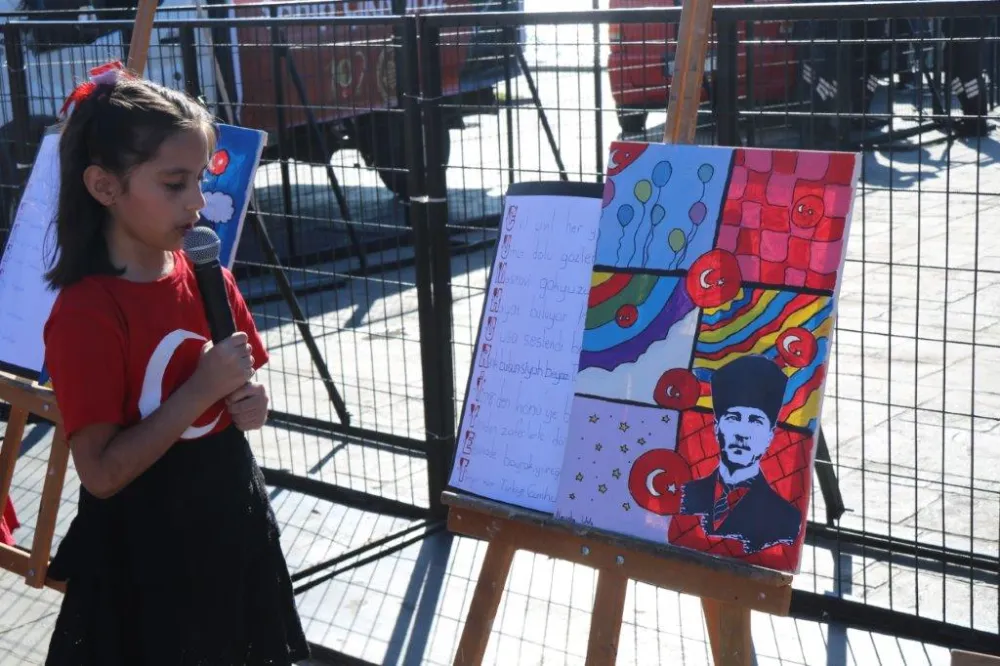 Oyuncak Müzesi Koordinatörü Melih Can Tanrıkulu, şu bilgileri verdi; “3-4-5. sınıflardan seçilen öğrenciler; “Cumhuriyet” temalı eş zamanlı olarak, hem şiir hem de resim canlı performansını Amfi Tiyatro’da izleyicilerin karşısında deneyimleme imkanı buldular.