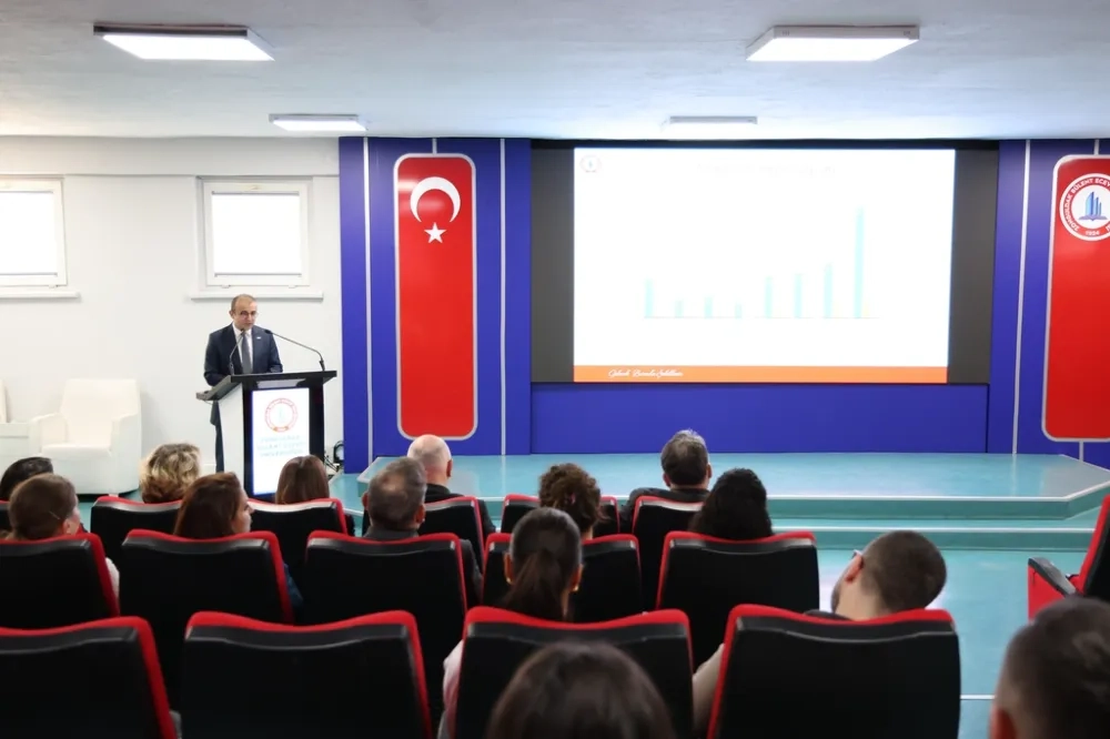 Toplantının açılış konuşmasını yapan Diş Hekimliği Fakültesi Dekanı Prof. Dr. Baran Can Sağlam, 2024-2025 Akademik Yılı boyunca fakülte ile Ağız ve Diş Sağlığı Uygulama ve Araştırma Merkezi bünyesinde gerçekleştirilen akademik, bilimsel ve idari faaliyetlere ilişkin kapsamlı bir sunum gerçekleştirdi. Prof. Dr. Sağlam; 2025-2026 Akademik Yılı’na yönelik planlanan çalışmalar, akademik yıl planlaması, fakültedeki akademik ve idari personel ile öğrenci sayıları, tamamlanan ve devam eden bilimsel, sosyal ve akademik projeler hakkında ayrıntılı bilgiler paylaştı.