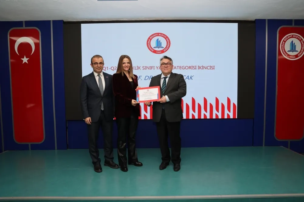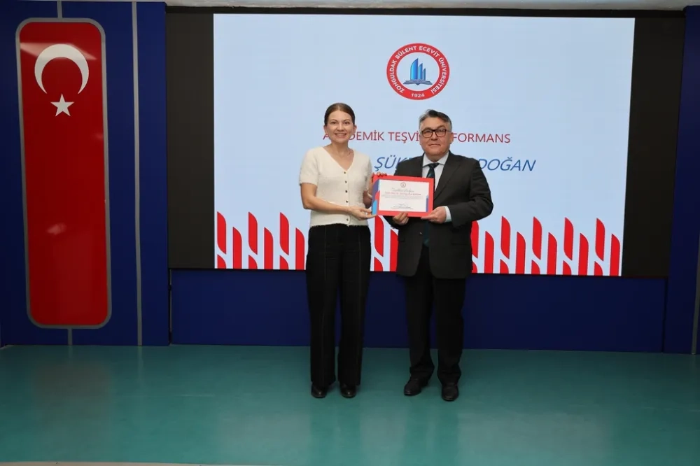 Sunumun ardından gerçekleştirilen Diş Hekimliği Fakültesi 2025-2026 Akademik Kurul Toplantısı, ulusal ve uluslararası indekslerde yayımlanan bilimsel çalışmalarıyla öne çıkan akademisyenlere Rektör Prof. Dr. İsmail Hakkı Özölçer tarafından teşekkür belgelerinin takdim edilmesiyle devam etti.