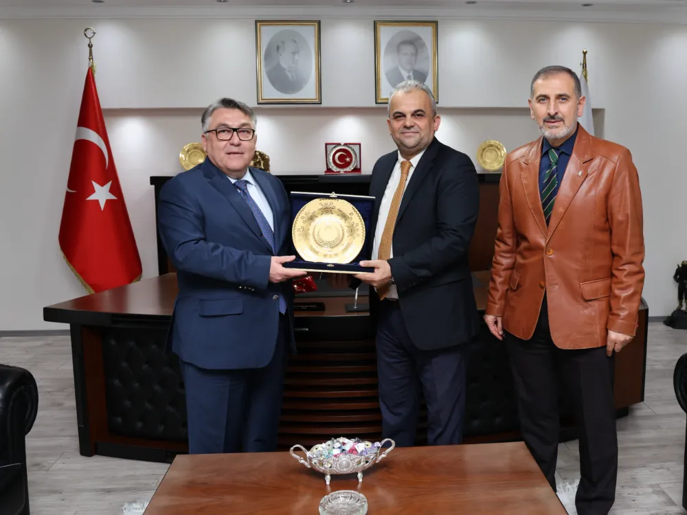 Rektörlük makamında gerçekleşen kabulde, BEUN Kütüphane ve Dokümantasyon Daire Başkanı Osman Demir de hazır bulundu.