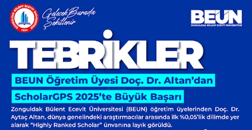 Uluslararası akademik performans ve etki analiz platformu ScholarGPS tarafından açıklanan 2025 Scholar Rankings sonuçlarına göre, Zonguldak Bülent Ecevit Üniversitesi (BEUN) önemli bir akademik başarıya daha imza attı. BEUN öğretim üyelerinden Doç. Dr. Aytaç Altan, dünya genelindeki araştırmacılar arasında ilk %0,05’lik dilimde yer alarak “Highly Ranked Scholar” ünvanına layık görüldü.