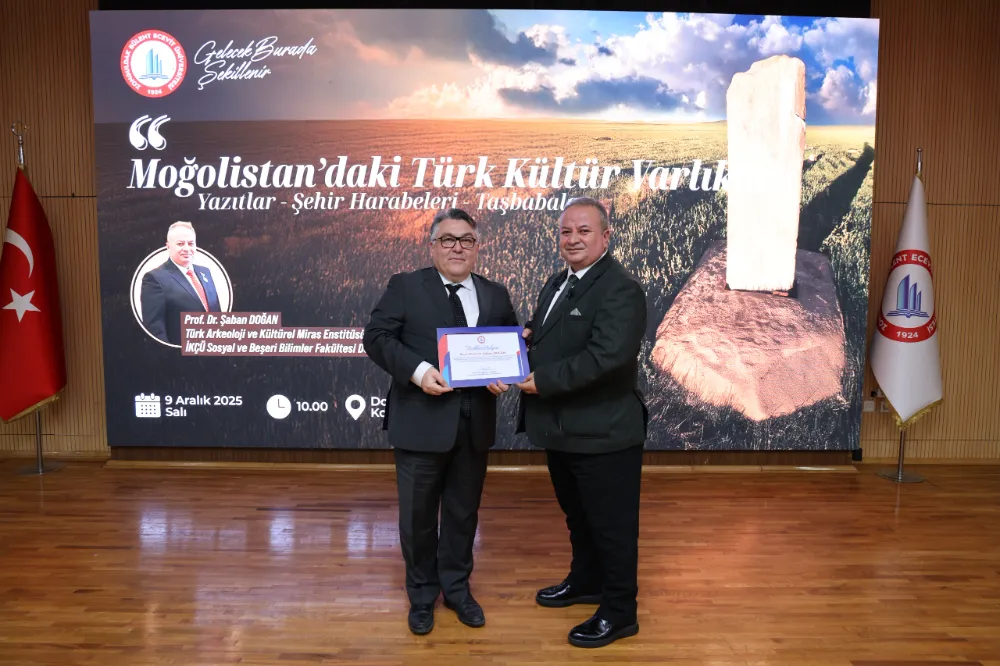 BEUN ev sahipliğinde gerçekleşen Moğolistan'daki Türk Kültür Varlıkları" (Yazıtlar, Şehir Harabeleri, Taşbabalar)” başlıklı konferans, Prof. Dr. Şaban Doğan’a teşekkür belgesinin takdim edilmesiyle ve günün anısına çekilen hatıra fotoğrafıyla son buldu.