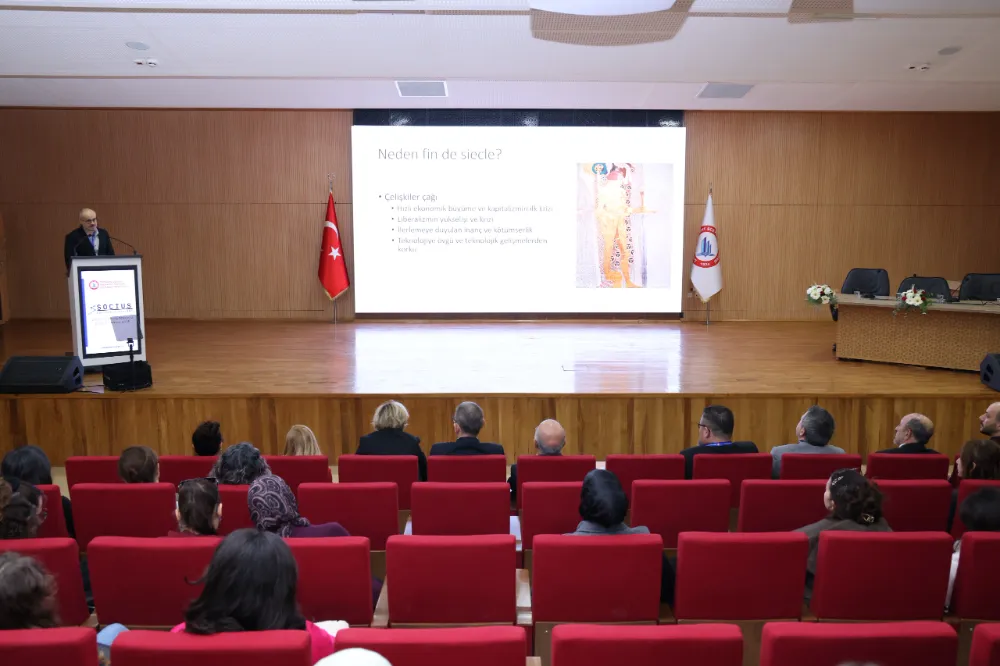 Açılış konuşmalarının ardından Orta Doğu Teknik Üniversitesi öğretim üyelerinden Prof. Dr. Erden Atilla Aytekin, “Başka Bir Fin de Siècle: Yirminci Yüzyıl Sonunda Sanayisizleşme Süreçleri” başlıklı sunumuyla katılımcılara kapsamlı bir değerlendirme sundu.