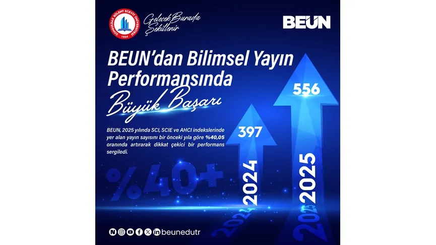 Zonguldak Bülent Ecevit Üniversitesi (BEUN), uluslararası bilimsel yayın alanında gösterdiği istikrarlı yükselişle önemli bir başarıya imza attı. BEUN, 2025 yılında SCI, SCIE ve AHCI indekslerinde yer alan yayın sayısını bir önceki yıla göre %40,05 oranında artırarak dikkat çekici bir performans sergiledi.