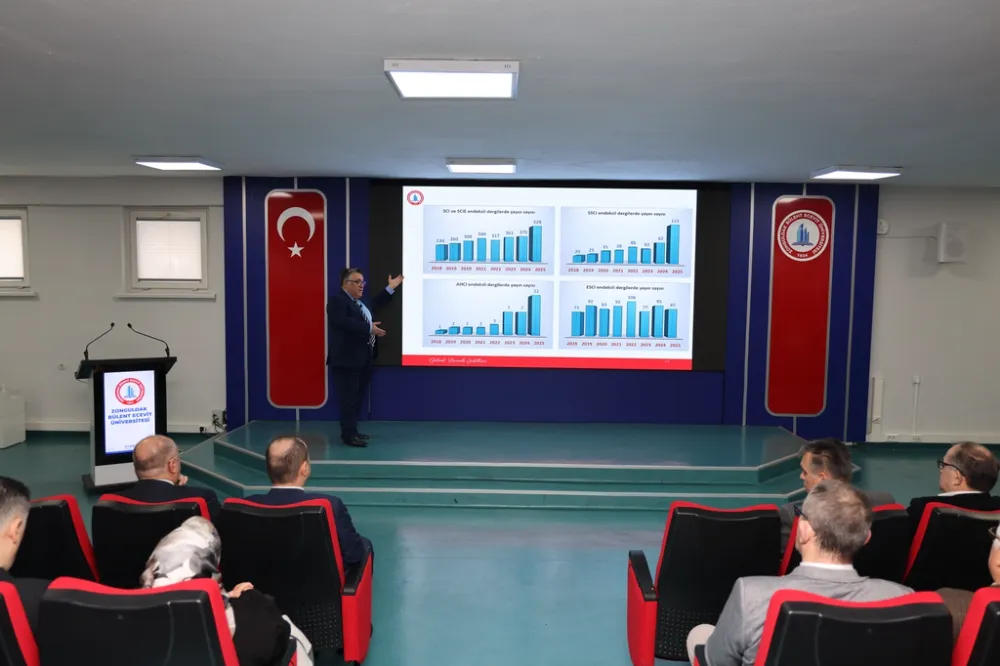 2022 ile 2025 yılları arasında bir değerlendirme yaparak BAP destekli proje sayısının 62’den 194’e, BAP makale destek sayısının ise 0’dan 100’e yükseldiğini belirten Rektör Özölçer, TÜBİTAK 2209-A Programı kapsamında %55 kabul oranı ile 99 projenin desteklendiğini söyledi. Elsevier ve Stanford Üniversitesi iş birliğiyle hazırlanan “Dünyanın En Etkili Bilim İnsanları 2024” listesinde BEUN’dan 8 akademisyenin yer aldığını vurgulayan Özölçer; Zonguldak Teknoparkta firma sayısının 20’den 43’e, yürütülen proje sayısının 108’e ulaştığını ve 227 kişilik istihdam sağlandığını ifade etti. Aynı zamanda öğretim üyelerinin faydalı model, patent başvuruları, TÜBİTAK 1007 projeleri, TÜBİTAK Mükemmeliyet Mührü, AB destekli projeleri ile yılın doktora tezi ödülleri gibi önemli akademik başarılara imza attığını söyledi. Özölçer, bu başarının üniversitenin uluslararası bilim camiasındaki gücünü bir kez daha ortaya koyduğunu ifade etti.