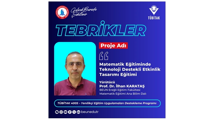 Zonguldak Bülent Ecevit Üniversitesi (BEUN) Ereğli Eğitim Fakültesi Matematik Eğitimi Ana Bilim Dalı akademisyenlerinden Prof. Dr. İlhan Karataş’ın yürütücülüğünü üstlendiği proje, Türkiye Bilimsel ve Teknolojik Araştırma Kurumu (TÜBİTAK) tarafından 4005 – Yenilikçi Eğitim Uygulamaları Destekleme Programı kapsamında destek almaya hak kazandı.