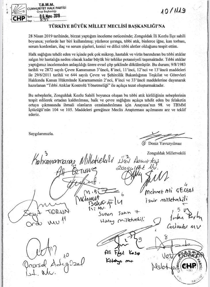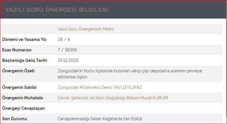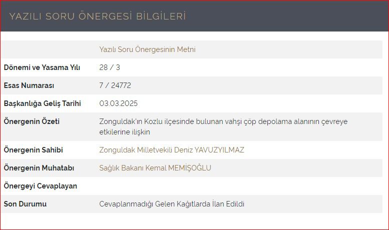 Konunun halk sağlığı boyutuna ilişkin sorularımız Sağlık Bakanlığı tarafından yanıtsız bırakılıyor. Her deniz dalgasıyla evsel ve tıbbi atıklarla dolu çöp yığınları Zonguldak’ın sahillerine yayılırken Sağlık Bakanlığı sessiz kalıyor. Son soru önergemize aylar geçmesine rağmen tek bir yanıt dahi verilmedi. Vatandaş sağlığından oluyor, Bakanlık ise üç maymunu oynuyor.