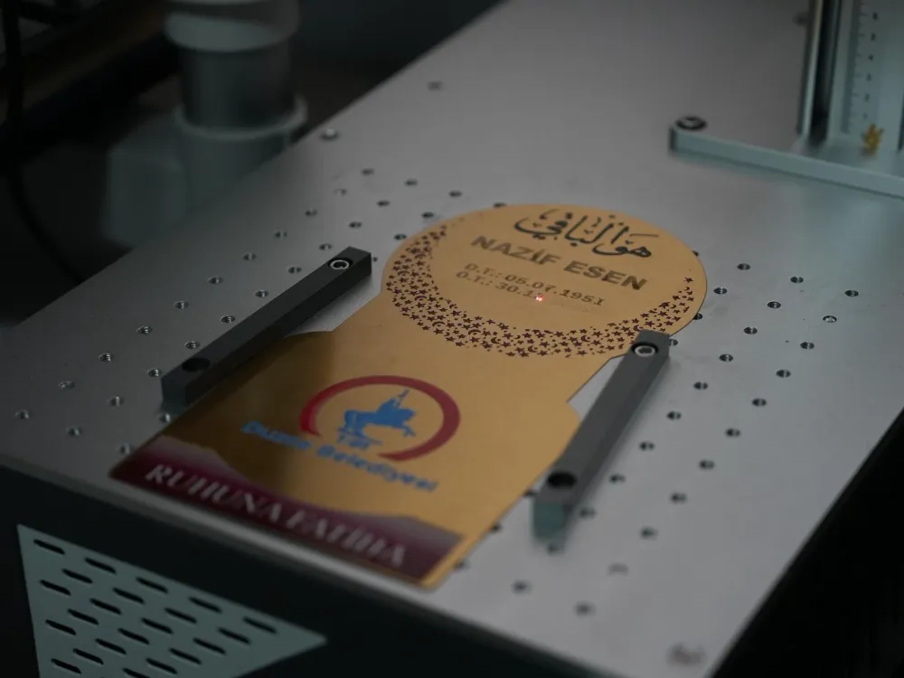 Düzce Belediyesi Mezarlıklar Müdürlüğü, defin hizmetlerinde yaşanan bir soruna da kalıcı çözüm getirdi. Daha önce yalnızca ahşap mezar başlıkları kullanılırken, müdürlük bünyesine kazandırılan lazer baskı makinesi sayesinde metal plakalar üzerine baskı yapılmaya başlandı. Yeni uygulamayla birlikte tüm definlerde ahşap mezar başlıklarına; merhumun adı, soyadı, doğum ve ölüm tarihlerini içeren metal plakalar yerleştiriliyor. Bu sayede hem Mezarlık Bilgi Sistemi’nde yapılan fotoğraflandırmalarda kimlik bilgilerinin yer alması hem de cenaze yakınlarının mezarları daha kolay bulabilmesi sağlanıyor.