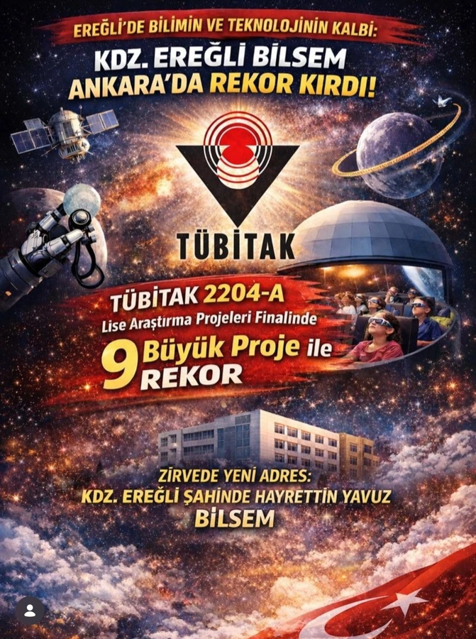 “Karadeniz Ereğli Şahinde Hayrettin Yavuz Bilim ve Sanat Merkezimizin TÜBİTAK 2204-A Ankara Bölgesi’nde 9 proje ile elde ettiği bu tarihi başarı, ilçemizde bilime ve nitelikli eğitime verilen önemin somut bir göstergesidir. Bu gurur tablosunda emeği geçen öğrencilerimizi, danışman öğretmenlerimizi ve okul yöneticilerimizi tebrik ediyor, başarılarının artarak devam etmesini diliyorum.”