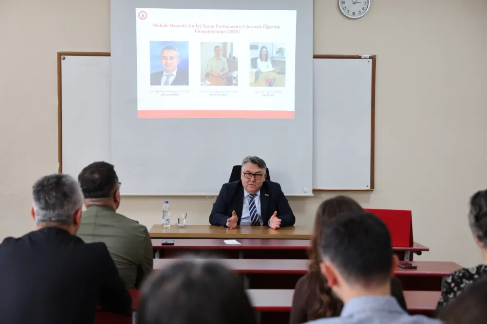 Toplantının devamında, ulusal ve uluslararası indekslerde yayımlanan bilimsel ve sanatsal çalışmalarıyla öne çıkan akademisyenlere, Rektör Prof. Dr. İsmail Hakkı Özölçer tarafından teşekkür belgeleri takdim edildi.