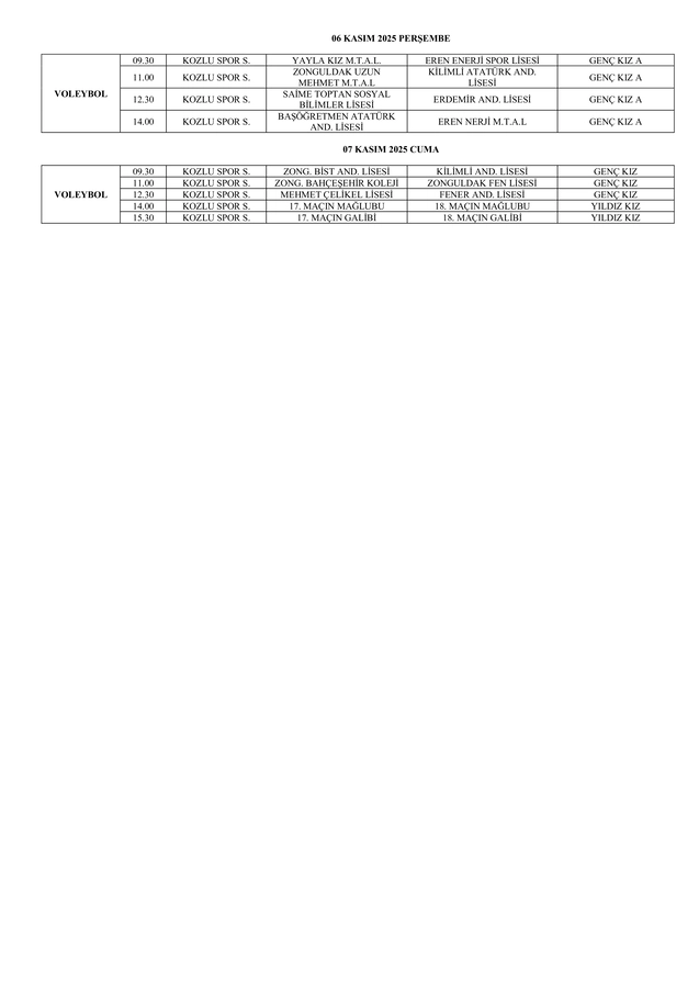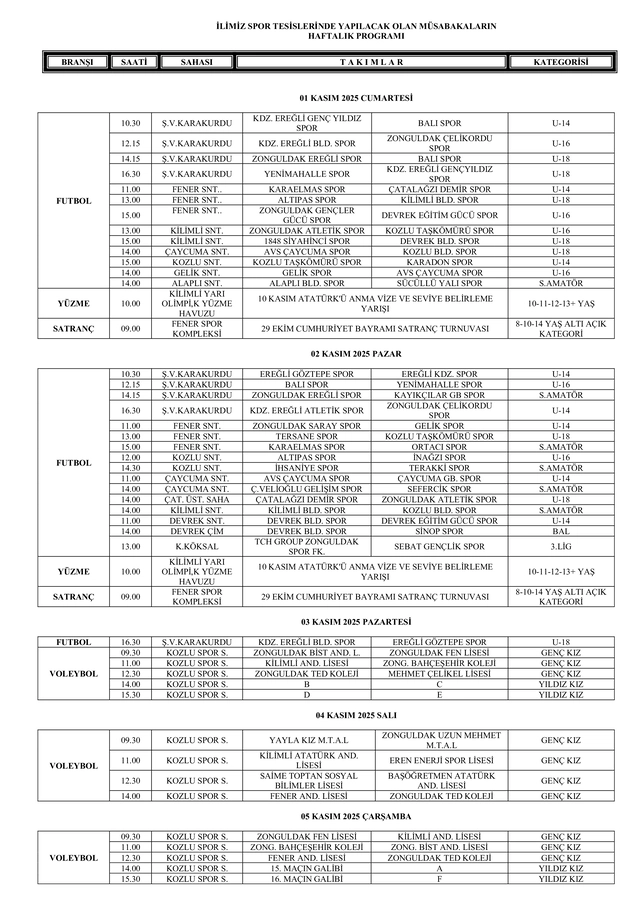İLİMİZ SPOR TESİSLERİNDE YAPILACAK OLAN MÜSABAKALARIN HAFTALIK PROGRAMI