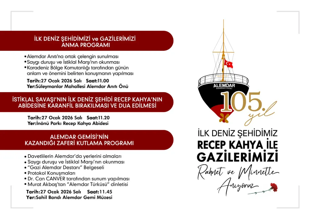 Tarih: 27 Ocak 2026 Salı, Saat: 11.45 Yer: Sahil Bandı Alemdar Gemi Müzesi