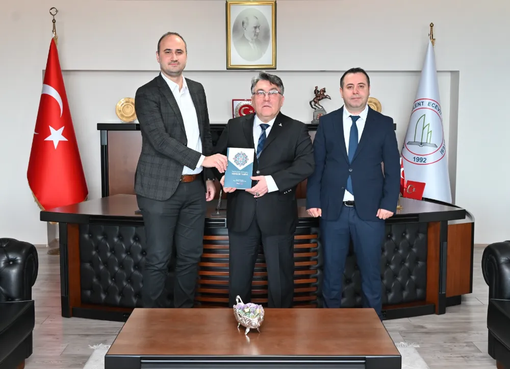 İnsan ve Toplum Bilimleri Fakültesi Tarih Bölümünden Arş. Gör. Dr. Yusuf Ötenkaya ve Arş. Gör. Dr. Kamuran Karabalık; Rektör Prof. Dr. İsmail Hakkı Özölçer’i makamında ziyaret etti.