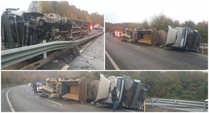 Kaza Ereğli Zonguldak Karayolu Bayat köyü mevkiinde meydana geldi. İddiaya göre Zonguldak’tan Ereğli istikametine giden Tayfun Vural idaresinde ki 78 BS 505 çekici 78 ABA 139 Dorse plakalı TIR, lastiğin patlaması sonucu sürücünün direksiyon hâkimiyetini kaybetmesi sonucu devrildi. Kazayı gören vatandaşlar sağlık ve polis ekiplerine haber verildi. Olay yerin gelen 112 ekipelri sürücünün yaralı olmadığını beyan etmesi üzerine kaza yerinden ayrıldı. Kazada devrilen TIR ve iş makinesinde hasar meydana geldi. Kazadan dolayı trafik tek şeritten verilirken, TIR ve iş makinesinin yoldan kaldırılması için çalışma başlatıldığı öğrenildi.
