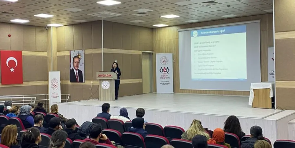 İŞKUR Zonguldak İl Müdürlüğü İş Kulübü Liderleri, Türkiye Aile Yılı Söyleşileri kapsamında önemli bir etkinlik düzenledi. Aile ve Sosyal Hizmetler İl Müdürlüğü'nde gerçekleştirilen bu etkinlikte, işgücü uyum projesi katılımcılarına "Kadın İstihdamı" konulu sunum yapıldı. Kadınların iş gücüne katılımının artırılmasının önemi vurgulandı.