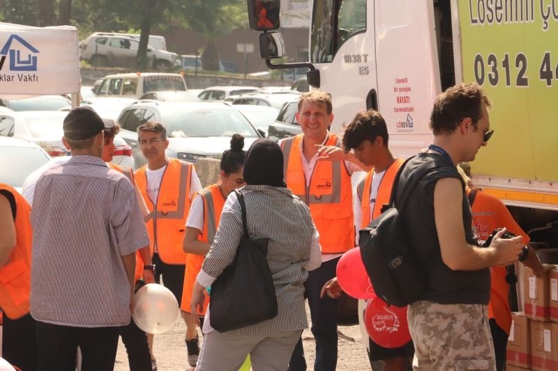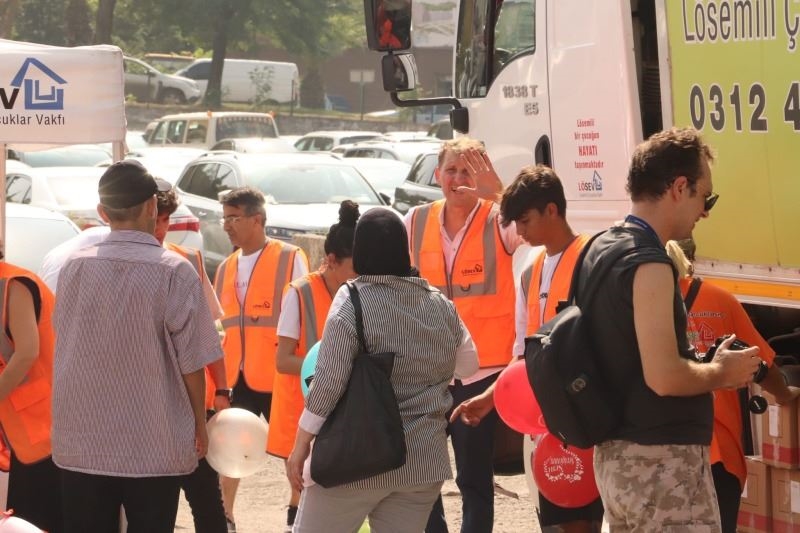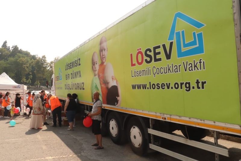 Lösemi ve kanser tedavisinde ilaçlar kadar sağlıklı ve doğal beslenmenin de önemi büyük. LÖSEV’e kayıtlı ailelerin büyük bir çoğunluğu asgari ücret ve altında gelire sahip. Bu nedenle dar gelirli ailelerin iyi beslenmek ve sağlıklı koşulları sağlamak için desteğe ihtiyaç duyuyor. Hastaların ve ailelerinin tüm temel ihtiyaçlarını karşılamak amacıyla Türkiye’nin dört bir yanını dolaşan LÖSEV’in İyilikler Tırı 23 Ağustos’ta Zonguldak Ereğli'deki LÖSEV Ailelerine yardımlarını ulaştırdı. Türkiye’nin tüm bölgelerinde kuru gıdadan et ve et ürünlerine, kırtasiyeden giyime bir lösemi ve kanser hastasının iyileşmesi için gerekli olan temel ihtiyaçları içeren yardımları ulaştıran LÖSEV İyilikler Tırında aileler, istediği ürünleri seçebiliyor. Lösemili ve kanserli çocuklar aileleriyle birlikte organizasyona katıldı.