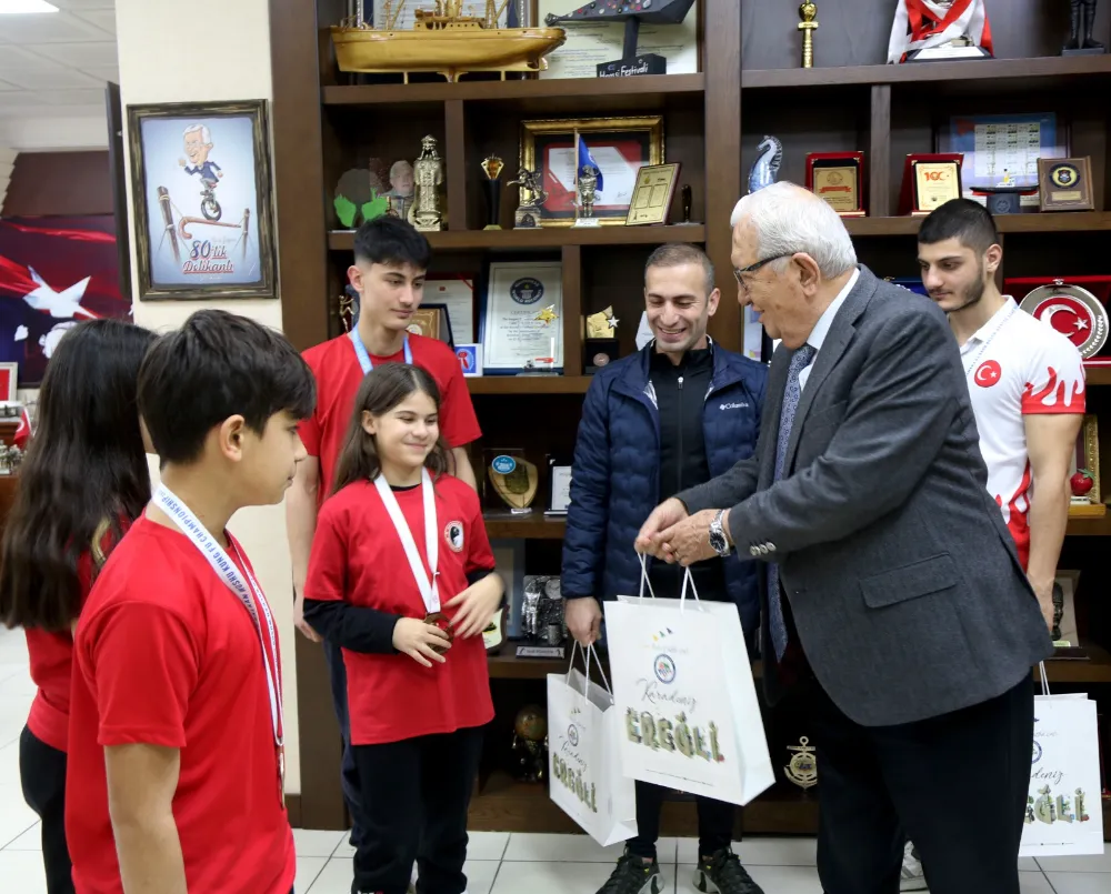 Karadeniz Ereğli Dövüş Sanatları Spor Kulübü’nün ulusal ve uluslararası organizasyonlarda elde ettiği başarıları görmekten büyük mutluluk duydum. Balkan Şampiyonası’nda sporcularımız 5 altın madalya ve 1 Balkan üçüncülüğü kazanarak ilçemizi gururlandırdı. Yusuf Eren Yılmaz, Erva Sofuoğlu, Zübeyde Yıldız, Azat Deniz Yıldırım ve Emir Efe Başol Balkan Şampiyonu olurken, Yunus Emre Yıldırım Balkan üçüncüsü oldu.