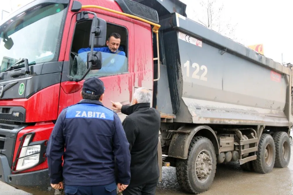 Kdz. Ereğli Belediyesi Zabıta Müdürlüğü ve Temizlik İşleri Müdürlüğü, kenti çamur deryasına boğan hafriyat kamyonlarına gerekli tedbirleri almaları için müdahalede bulundu.