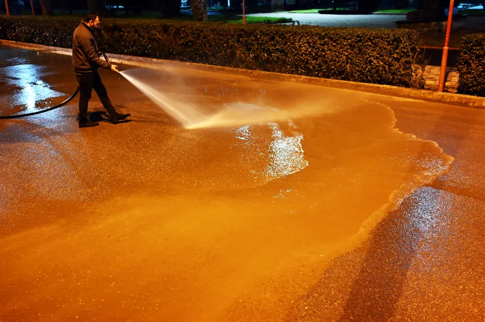 Belediye Temizlik İşleri Müdürlüğü ekipleri, her gece tazyikli suyla yolları çamurdan arındırıyor ancak gün geçmeden hafriyat kamyonları yolları yine berbat ediyor.