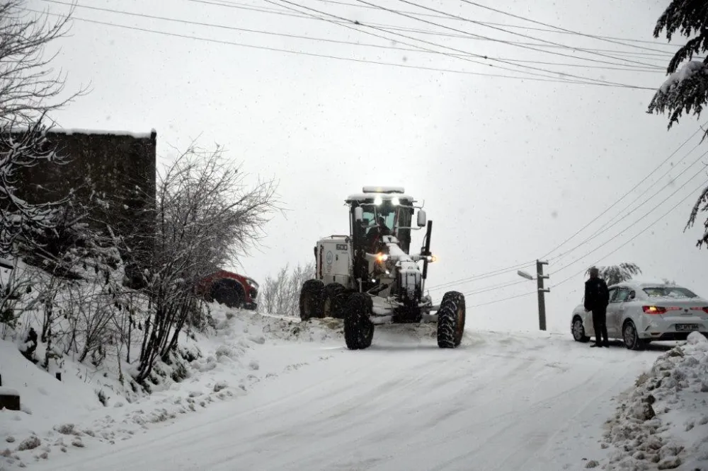 Belediye ekipleri, 650 kilometrelik yol ağında 22 ayrı iş makinesi ve çok sayıda personel ile kesintisiz ve güvenli ulaşım için mücadele ediyor.