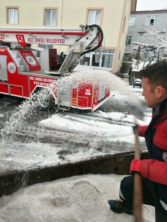 Kdz. Ereğli Belediyesi, ilgili tüm müdürlüklerin koordinasyonunda kar yağışına karşı ulaşımda bir aksaklık yaşanmaması için ekipleriyle birlikte sahada seferber olmuş durumda.