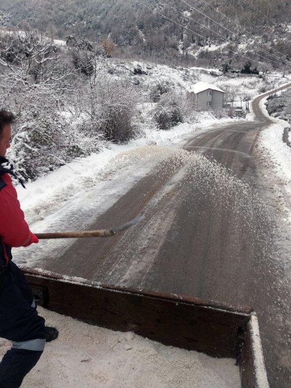 Kdz. Ereğli’de etkili olan kar yağışına karşı belediye ekipleri seferber olmuş durumda. 650 kilometrelik yol ağında 22 ayrı iş makinesiyle ulaşımda her hangi bir aksaklık yaşanmaması için kar temizleme ve buzlanmaya karşı tuzlama çalışmaları devam ediyor.