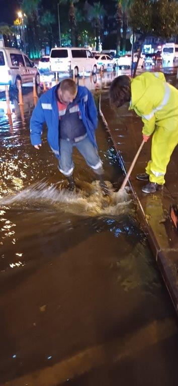 Yağmur şiddetini dindirdikten sonra da yaşanabilecek her hangi bir olumsuzluğa karşı ekipler seferberliğini sürdürdü.