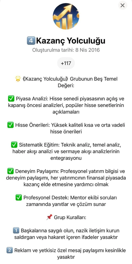 Yapılan incelemelerde; bu sahte hesap üzerinden kooperatifimiz adına finans ve yatırım vaadi içeren mesajlar gönderildiği, vatandaşların WhatsApp gruplarına davet edilerek yönlendirilmeye çalışıldığı belirlenmiştir. Bu içeriklerin ve gönderilen mesajların kooperatifimizle kesinlikle hiçbir ilgisi bulunmamaktadır.
