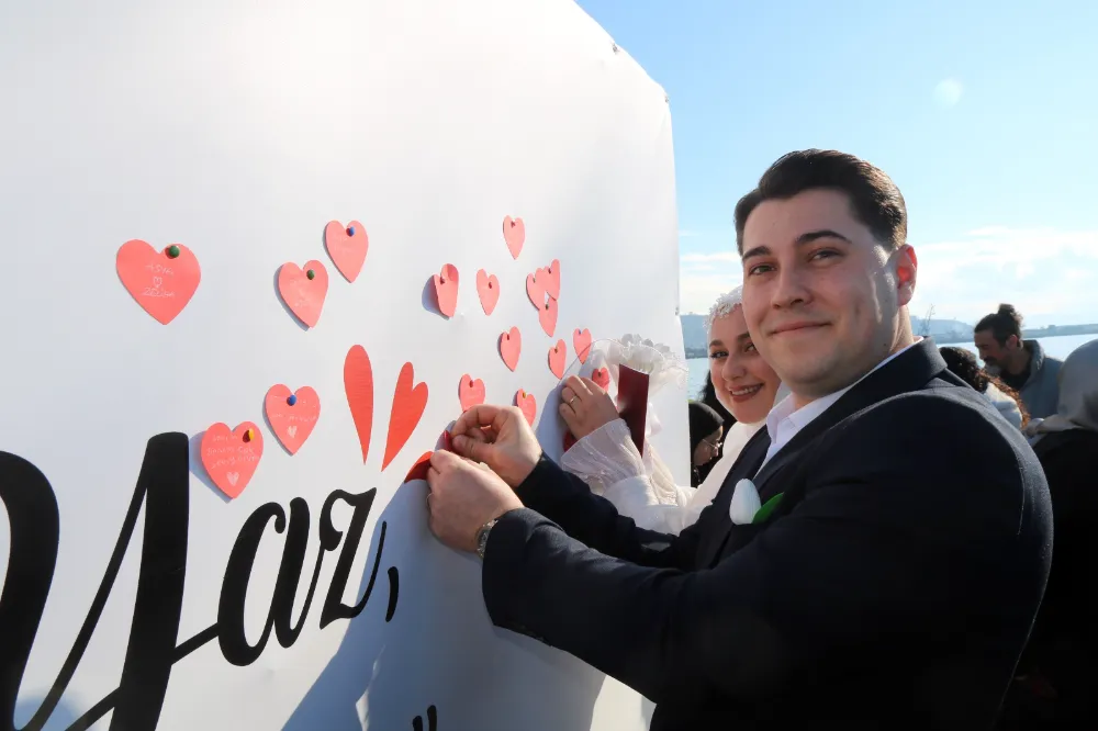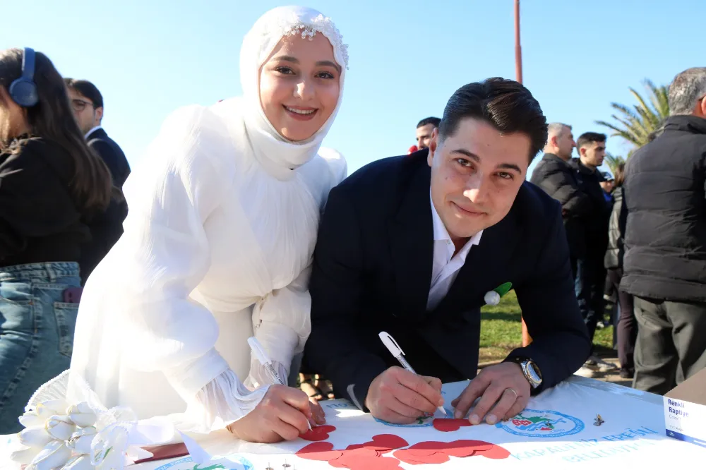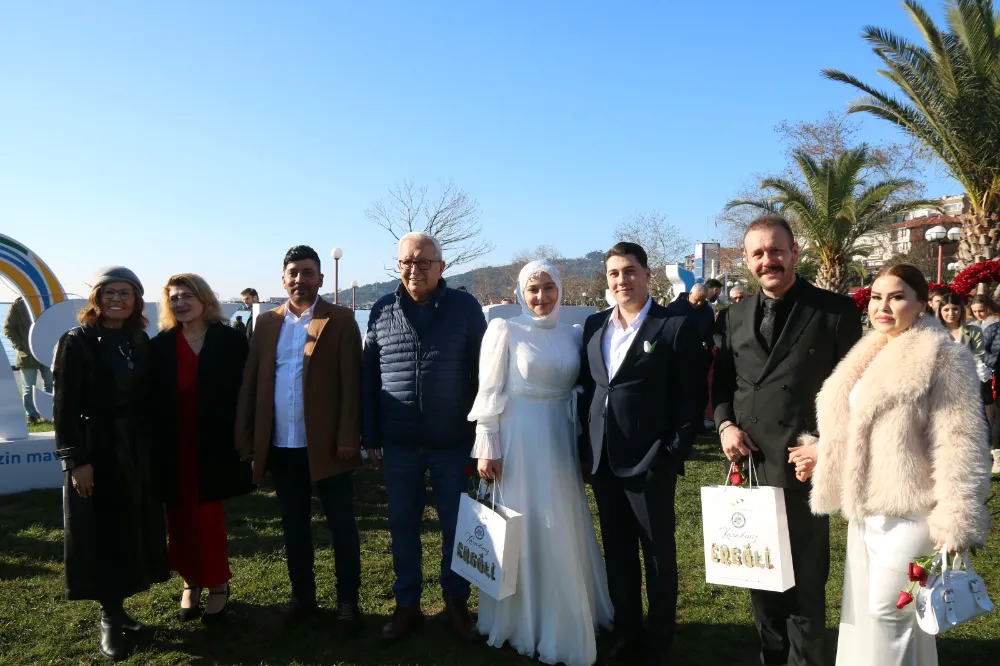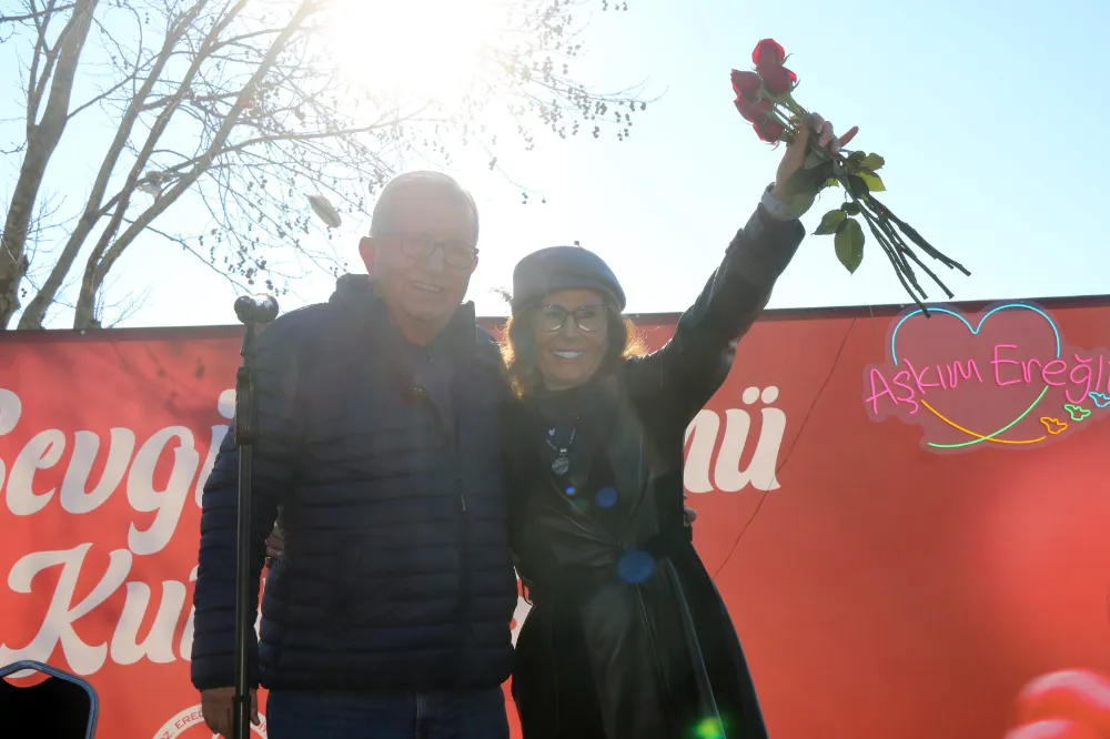 Belediye Başkanı Halil Posbıyık ve eşi Neriman Posbıyık, sevgilerini Ereğlilerle paylaştı. Canlı müzik eşliğinde her yaştan sevgililer gönüllerince eğlendi. Bugün evlenen 3 çift, mutluluklarını Ereğlilerle paylaştı. Kdz. Ereğli Belediyesi Kültür, Sanat ve Sosyal İşler Müdürlüğü, insanların bir araya geldiği, gülümsediği, birbirine sevgiyle dokunduğu anları çoğaltmak için 14 Şubat Sevgililer Günü’nde sahilde Ereğli’yi buluşturdu. Sahilde bulunan Aşkım Ereğli yazısının etrafında yapılan etkinliğe Belediye Başkanı Halil Posbıyık, eşi Neriman Posbıyık ile birlikte katıldı. Etkinlikte her yaştan sevgililer gönüllerince eğlendi. Bugün evlenen 3 çift, mutluluklarını Ereğlilerle paylaştı. Başkan Posbıyık ve eşi Neriman Posbıyık, katılanlara gül takdim etti. Canlı müzik, dans gösterileri, sürpriz ikramlıklar, fotoğraf köşesi, sevgi duvarının yer aldığı etkinlikte dilek balonları gökyüzüyle buluştu.