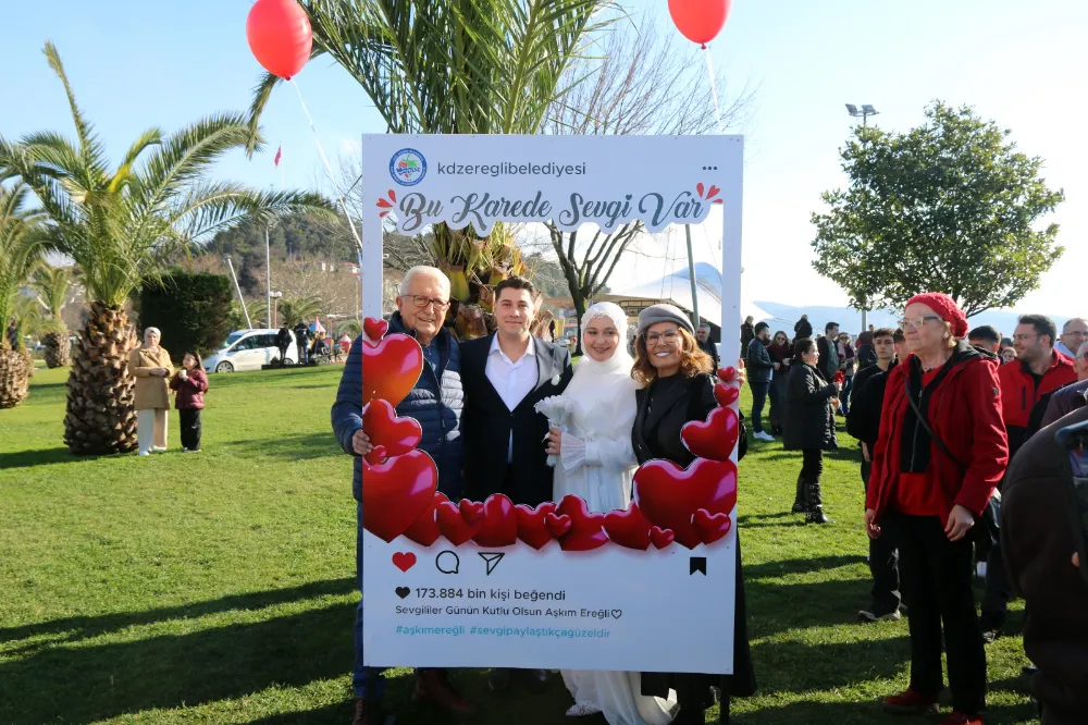 Kdz. Ereğli Belediyesi’nin 14 Şubat Sevgililer Günü’nde, sahilde bulunan ‘Aşkım Ereğli’ yazısının etrafında düzenlediği etkinlik yoğun ilgi gördü.