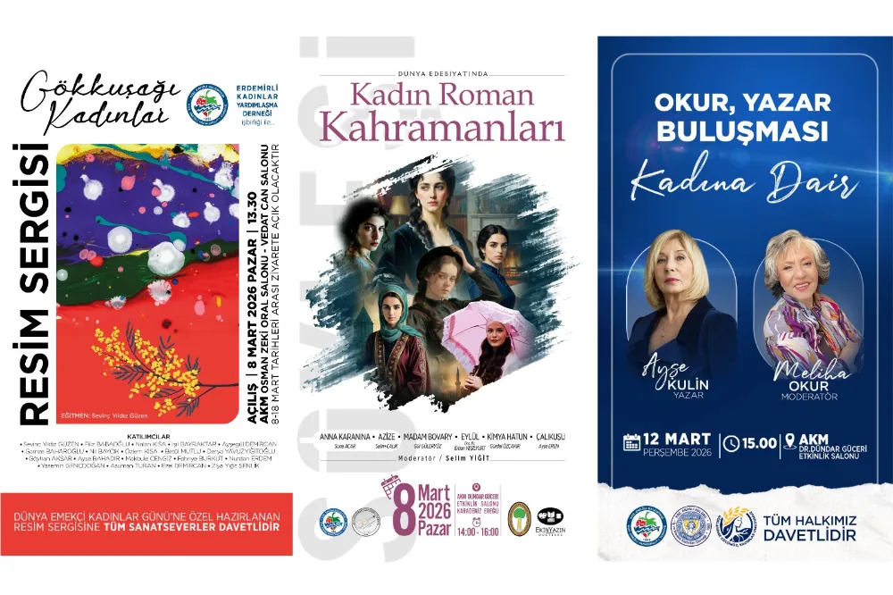 8 Mart Dünya Kadınlar Günü’ne özel son etkinlik ise bir okur-yazar buluşması olacak. Kdz. Ereğli Soroptimist Kulübü tarafından düzenlenen “Kadına Dair” başlıklı programda, usta yazar Ayşe Kulin, Ereğlili gazeteci-yazar Meliha Okur moderatörlüğünde okurlarla bir araya gelecek. Etkinlik, 12 Mart 2026 Perşembe günü saat 15.00’te Atatürk Kültür Merkezi Dr. Dündar Güçeri Etkinlik Salonu’nda yapılacak.