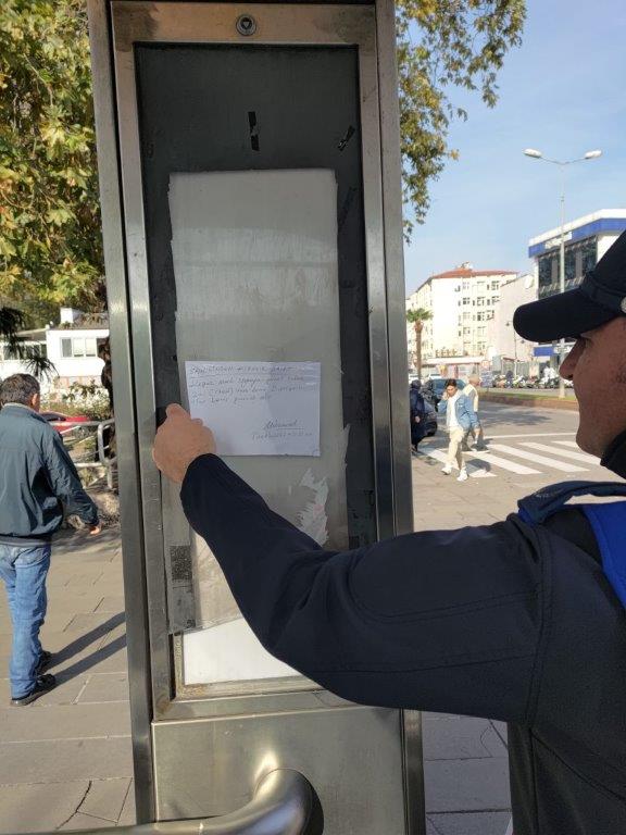 Buna göre her isteyen vatandaş elindeki ilanı, reklam afişleri rastgele caddelere, duvarlara, otobüs duraklarına asma yoluna gitmemelidir. Zabıta olarak bundan sonra takiplerimizi sürdürerek, görüntü ve çevre kirliliğine sebebiyet veren bu olumsuzlukların önüne geçilecektir” dedi.