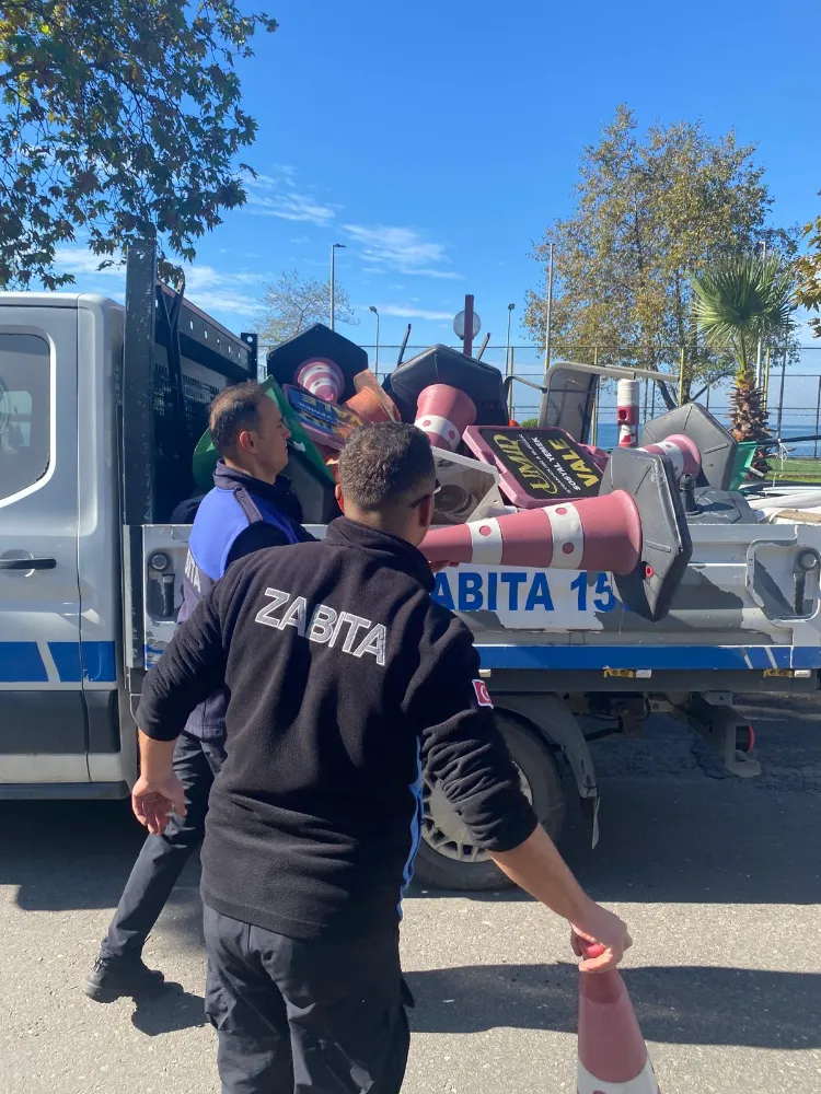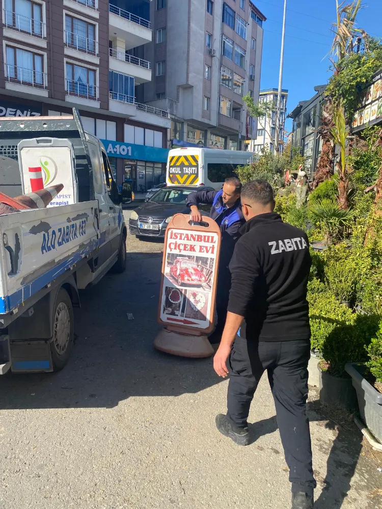 İlçe emniyet müdürlüğüne bağlı polis ekiplerinin de destek verdiği operasyonda kaldırımlara konan plastik duba, reklam flama ve tabela, lastik ve benzeri işgal malzemeleri tek tek toplandı.