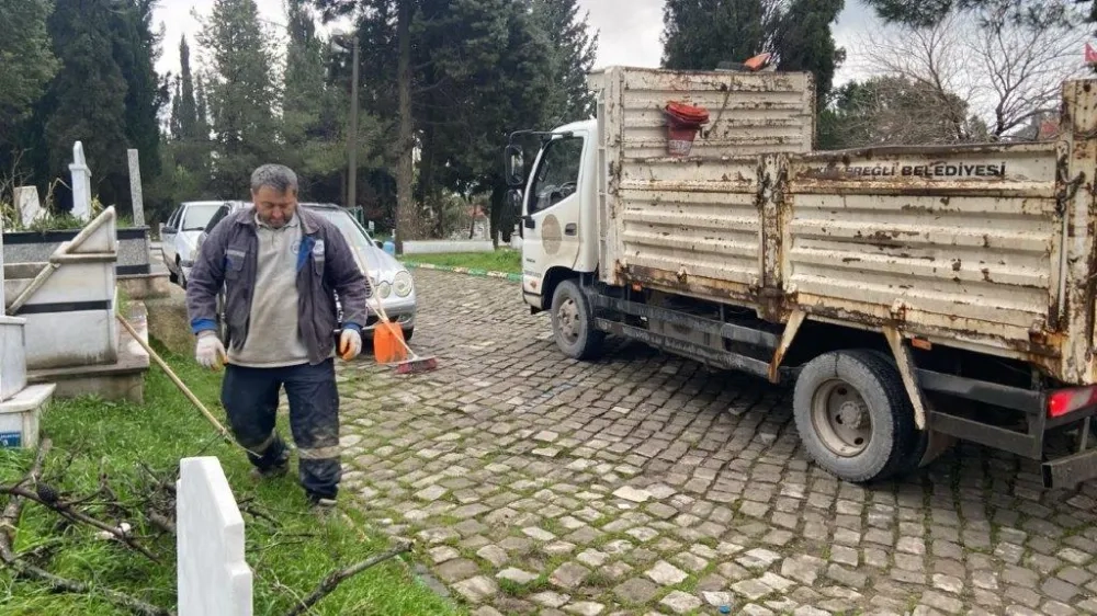 Kdz. Ereğli Belediyesi Mezarlıklar Müdürlüğü, kabir ziyaretleri öncesi kapsamlı temizlik ve bakım çalışmalarını sürdürüyor.