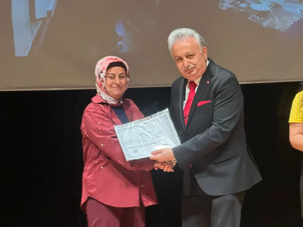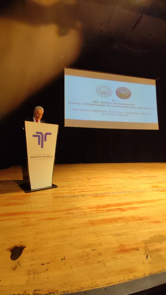 Hüseyin TATOĞLU Kültür Merkezi’nde 25 Kasım 2025 Salı günü saat 11.00’de Saygı duruşu ve İstiklal Marşı’nın okunması ile başlayan törene Gülüç Belediye Başkanı Recep Sadık Kara, Kandilli Belediye Başkanı Osman Çakmakoğlu, Kdz. Ereğli Belediye Başkanvekili İsmail Başel, AK Parti Kdz.Ereğli İlçe Başkanı Mücahit Andiç, CHP Kdz.Ereğli İlçe Başkanı Zerrin Yılmaz Erdoğan, BBP Kdz.Ereğli İlçe Başkanı Yusuf Karoğlu, İlçe Milli Eğitim Müdürü Harun Akgül, Sosyal Yardımlaşma ve Dayanışma Vakfı Müdürü Abdullah Hasçelik, Sosyal Hizmet Merkezi Müdürü Deniz Peker, Halk Eğitim Merkezi Müdürü Dr. Metin Bozkurt, MÜSİAD Kdz.Ereğli Şube Başkanı Kemal Gülbay, bazı daire müdürleri ile çok sayıda kursiyer katıldı.