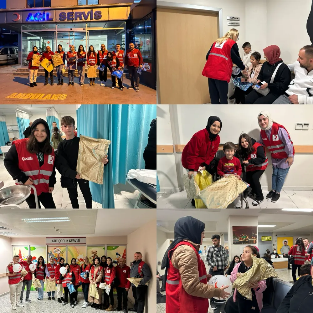 Türk Kızılayı Kdz. Ereğli Şube Başkanı Kürşat Yağız yeni yıla girerken hastanelerde tedavi gören çocuklar, özel çocukları, depremzede aileleri ve ihtiyaç sahiplerini ziyaret edip gıda yardımı ve hediyeler vererek mutlu etti.