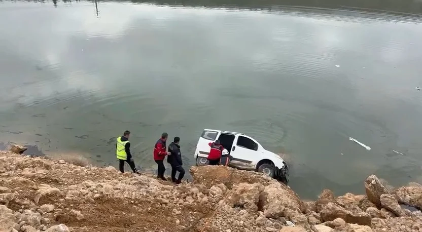 Malatya’da kontrolden çıkan araç gölete düştü
