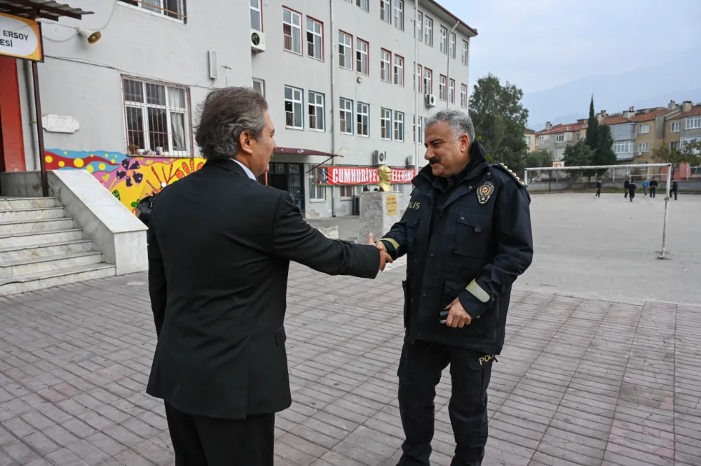“Gençlerimizin huzur ve güven içinde, bilinçli bireyler olarak yetişmesi hepimizin ortak hedefidir.” diyen Manisa İl Emniyet Müdürü, okul çevrelerinde alınan güvenlik önlemlerini de yerinde denetledi.