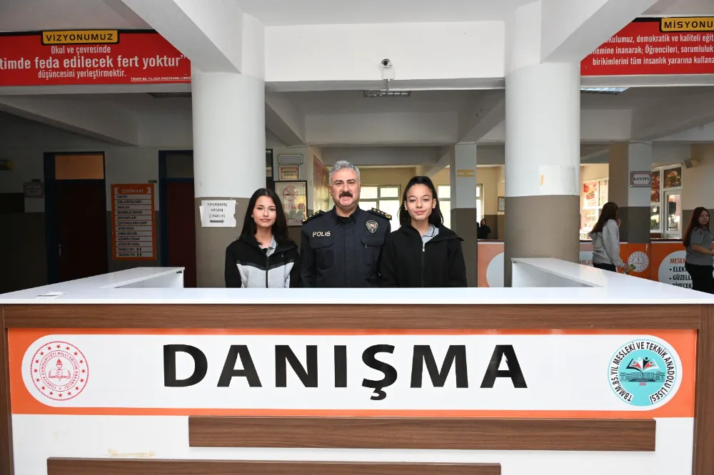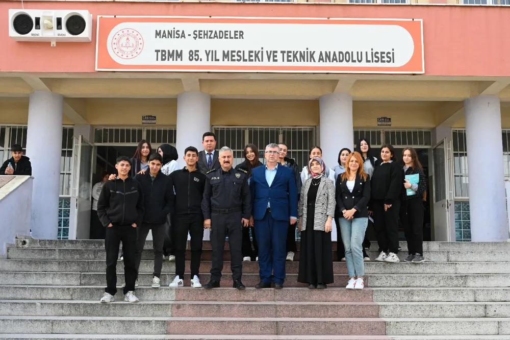 Bu kapsamda TBMM 85. Yıl Mesleki ve Teknik Anadolu Lisesi ile İsmet İnönü Kız Teknik ve Meslek Lisesini ziyaret eden İl Emniyet Müdürü; okul müdürleri Sn. Ali BALSÜT ve Sn. Okan ŞAHİN, öğretmenler ve öğrencilerle bir araya geldi.