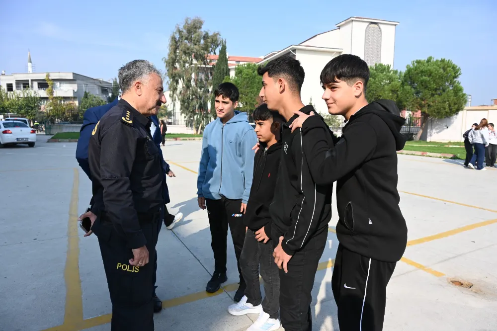 Ziyaret sırasında okul çevresindeki güvenlik tedbirlerini yerinde inceleyen, öğrencilerle samimi bir sohbet gerçekleştiren İl Emniyet Müdürü; “Gençlerimizin huzurlu ve güvenli bir eğitim ortamında yetişmesi, bizim için en öncelikli sorumluluktur. İfadelerini kullandı.