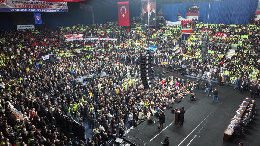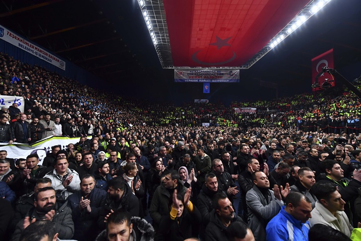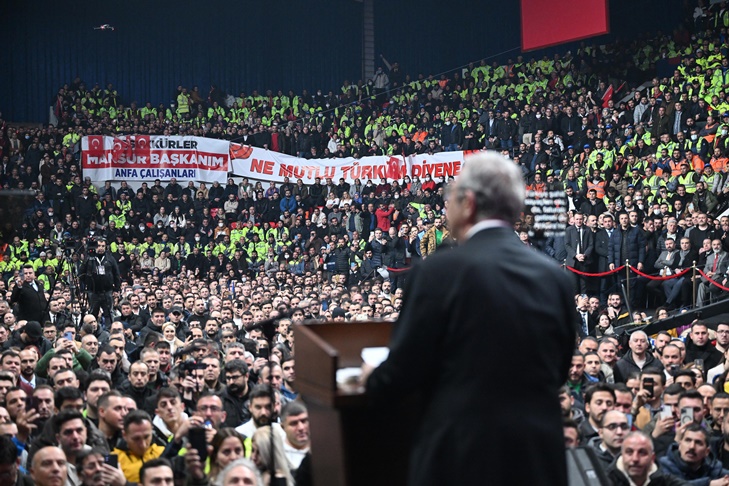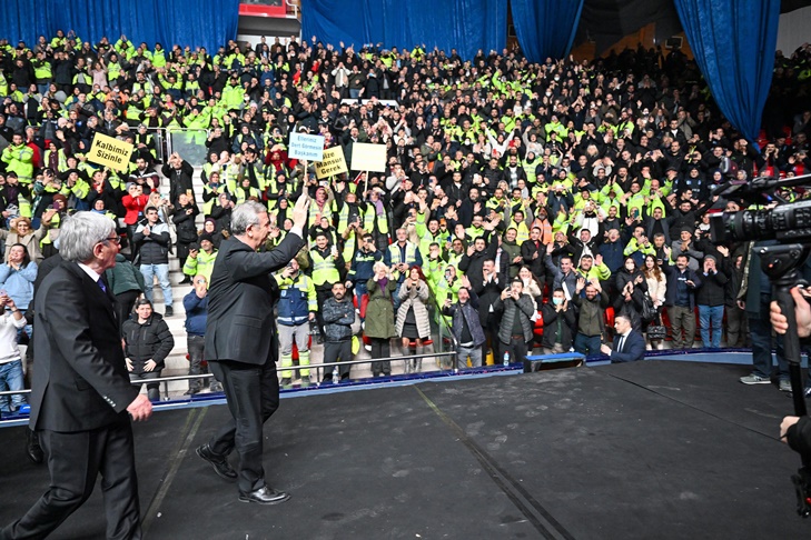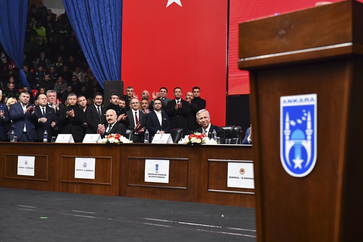 İmza töreni öncesinde Atatürk Spor Salonu’nu aileleriyle birlikte dolduran personel, Ankara Büyükşehir Belediye Başkanı Mansur Yavaş’ı davul-zurna eşliğinde ve “Ankara seninle gurur duyuyor”, “İşte Başkan, işte Ankara” sloganlarıyla karşıladı.