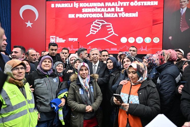 Ankara Büyükşehir Belediyesi ve 5 farklı iş kolunda faaliyet gösteren Belediye-İş, Demiryol-İş, Tezkoop-İş, Güvenlik-İş ve Öz Gıda-İş sendikaları arasında daha önce imzalanan TİS’e ek olarak yapılan protokol ile 2024 yılında uygulanacak maaş oranları belirlendi.